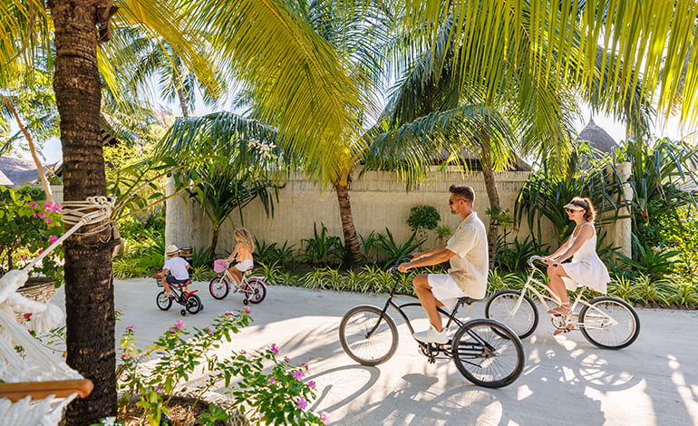 This new resort sets itself apart with its unusual and delightful design plan of 34 exclusively two-bedroom units – ideal for families or two couples traveling together, offering more space and better value than two individual accommodations and just as much privacy. However, that’s where the separation ends, as its large, natural island setting is made for exploring together. Wide paths, greenery, and open spaces let guests discover island life beyond the villa, while outdoor recreation for all ages (mini-golf, futsal, padel/tennis courts, a skate part, BMX track, and more) invites them to bond over new activities.