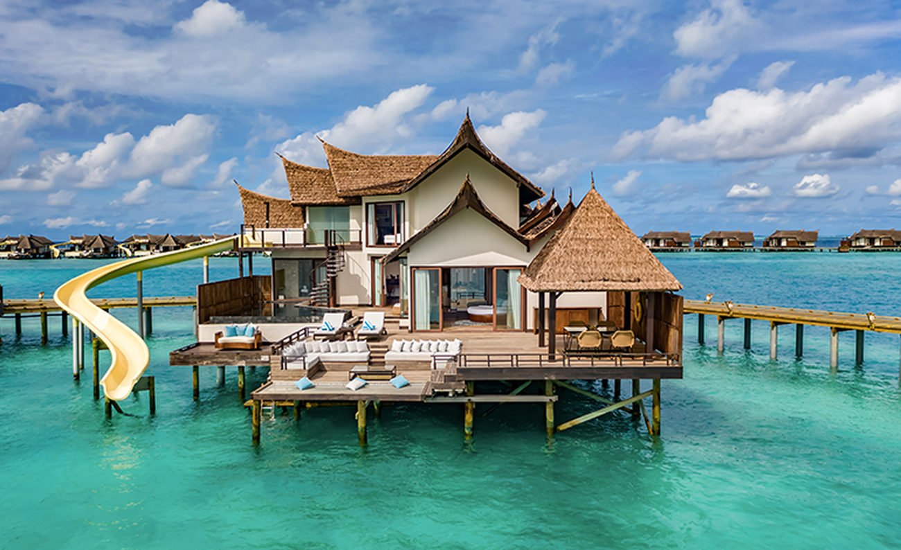An award-winning culinary journey is the focal point of any stay at this all-inclusive resort … which is saying a lot when complimentary return airport transfers are by luxury speedboat, your choice of dive experience or 60-minute spa treatment, complimentary non-motorized water sports, and a sunset fishing cruise is part of the room rate. “Room” is yet another understatement – the accommodations are actually villas built right on the beach or over the water. Dreamy upgrades mean private pools, even a water slide right into the sea.