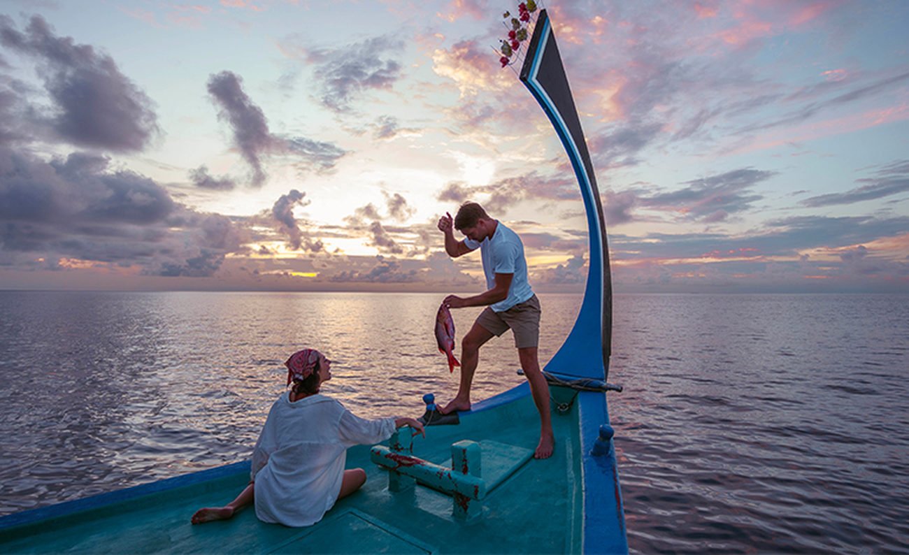 This exclusive retreat provides a contemporary sanctuary for adults looking to experience the Maldives in a relaxed, all-inclusive fashion. Here, the European-style Swing Bar opens early and closes (very) late, pouring unlimited spirits, wines, beers, and signature cocktails and mocktails at the pool and restaurants. All-day dining at Ylang Ylang merges live cooking stations with à la carte with three seating areas (including a library zone!) for variety. For something even more out of the “blu,” underwater dining at ONLY BLU is also available. Deeper immersion into the sea life of the resort is provided with complimentary use of snorkeling gear, stand-up paddle boards, kayaks, and a complimentary sunset fishing and guided snorkeling trip per stay.
