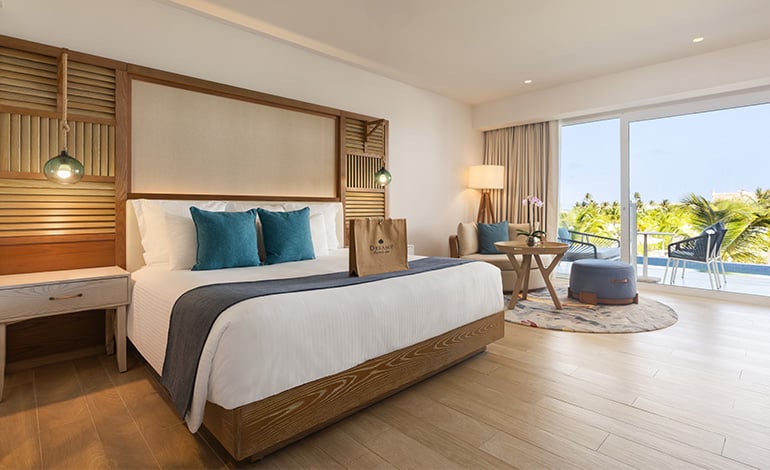 Tucked inside a gated community on Juanillo Beach just minutes from the Punta Cana International Airport (PUJ), it’s super easy to get to. PUJ is the busiest airport in the Dominican Republic as the main gateway to this region, and the second-busiest in all of the Caribbean. And not only are there plenty of nonstop flights arriving every hour, including ALGV’s high-commission Exclusive Nonstop Vacation Flights, it’s a pleasure to fly in and out of. Two terminals, free WiFi, and amenities such as Priority Pass-participating airport lounges (including one with a rooftop pool!) and a children’s play area helps visitors hold onto that vacation feeling just a little bit longer.