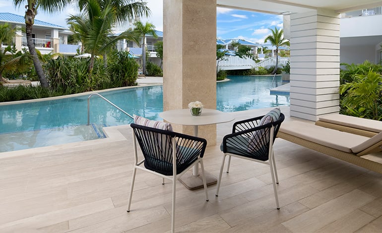 These higher floor units have access to a semi-private pool they can step down into right from the terrace. Some have ocean views and others have pool views, but the point is that no matter what, the view is from the novelty of being in a pool above it all.
